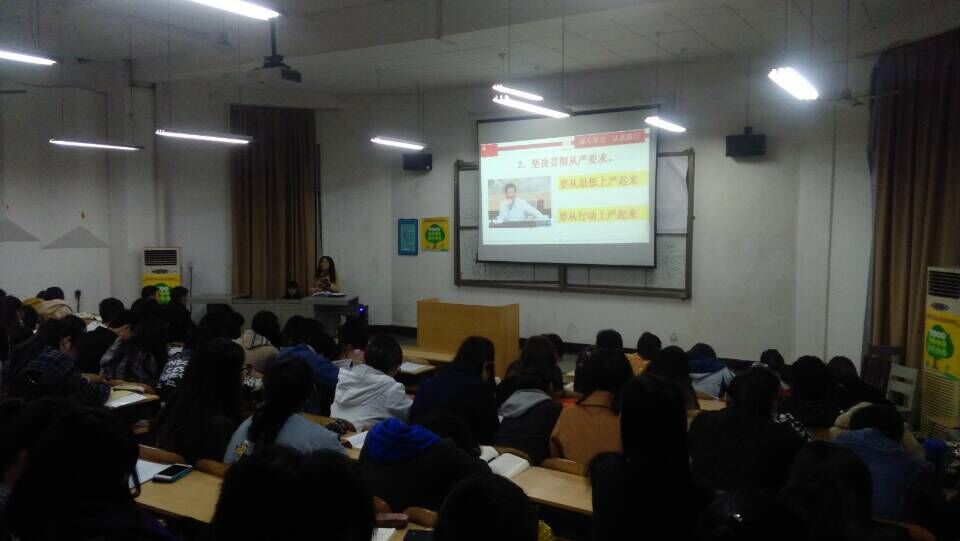 11月20日晚上七点在丹青楼1101教室,艺术设计系党总支书记胡嫔教授为党员、预备党员、入党积极分子讲授了自觉学习,做践行 “三严三实”的好干部的党课,有近180名学员听取党课。