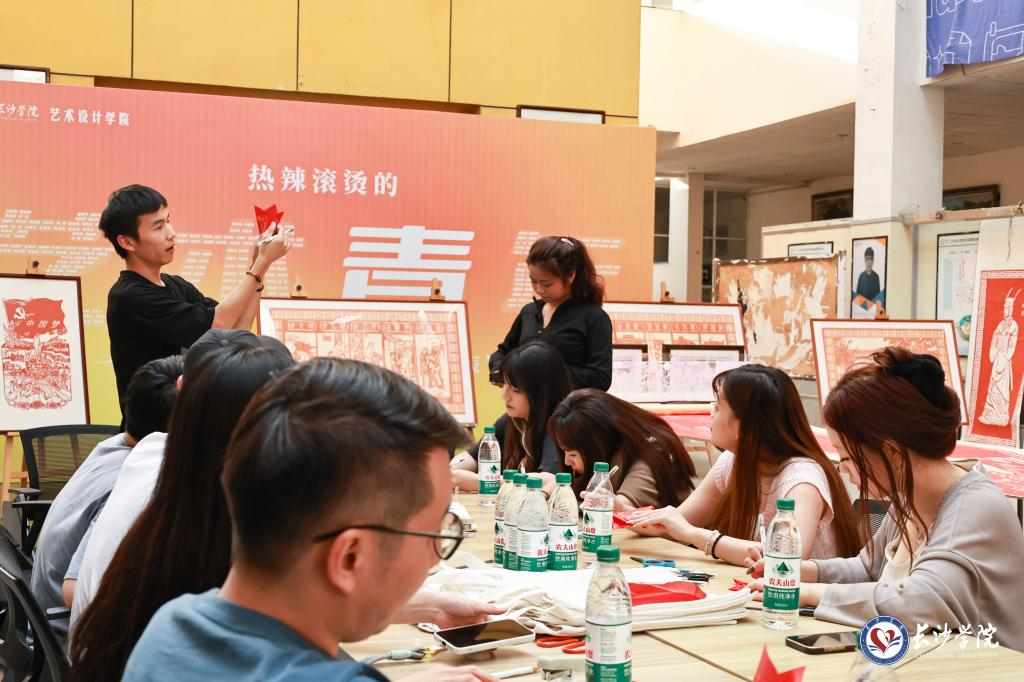 参观结束后,我院红剪坊成员代表邀请交流团入座,并表达了我院对友校来访的热烈欢迎。随后,我院红剪坊成员代表带领交流团开始了一堂生动有趣的剪纸课,交流团在红剪坊成员的细心指导下亲手制作出属于自己的剪纸作品,尽管作品稚嫩,但每个人都充满了成就感。与此同时,每位交流团成员在活动结束时都获得了来自红剪坊准备的精美剪纸作品。