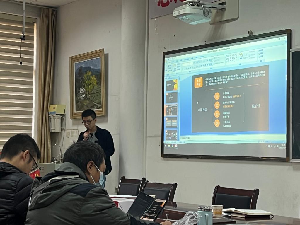 为进一步提高新入职青年教师的专业素养和教学能力,夯实青年教师教学的基本功,落实学校青年教师培养计划,2023年11月14日下午4:00,我院在丹青楼1106会议室开展了新进教师听课评课活动。活动由我院副院长黄佳主持,党总支书记舒欣、院长胡友慧、副院长邓伍英,以及全体教职工参加了本次活动。讲课教师为我院新进博士陈城、李兰琳,课程章节分别是《动画的艺术特点》、《主色调的形成》。