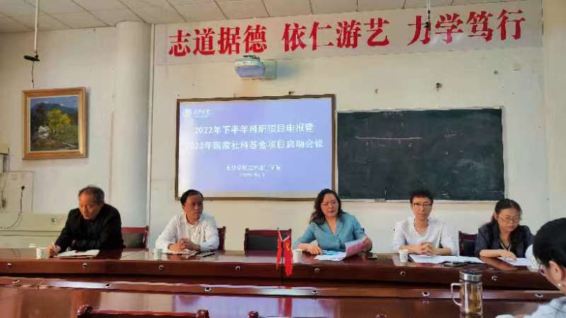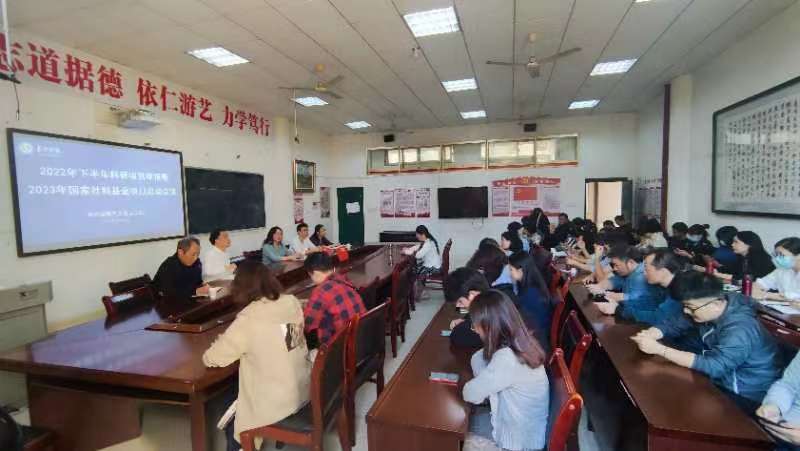 10月25日下午,我院在丹青楼1106会议室召开2022年下半年科研项目申报暨2023年国家社科基金项目启动会议,会议由院长胡友慧主持,党总支书记舒欣、副书记黄慧瑾、副院长邓伍英、副院长黄佳以及学院全体教师参加了此次会议。