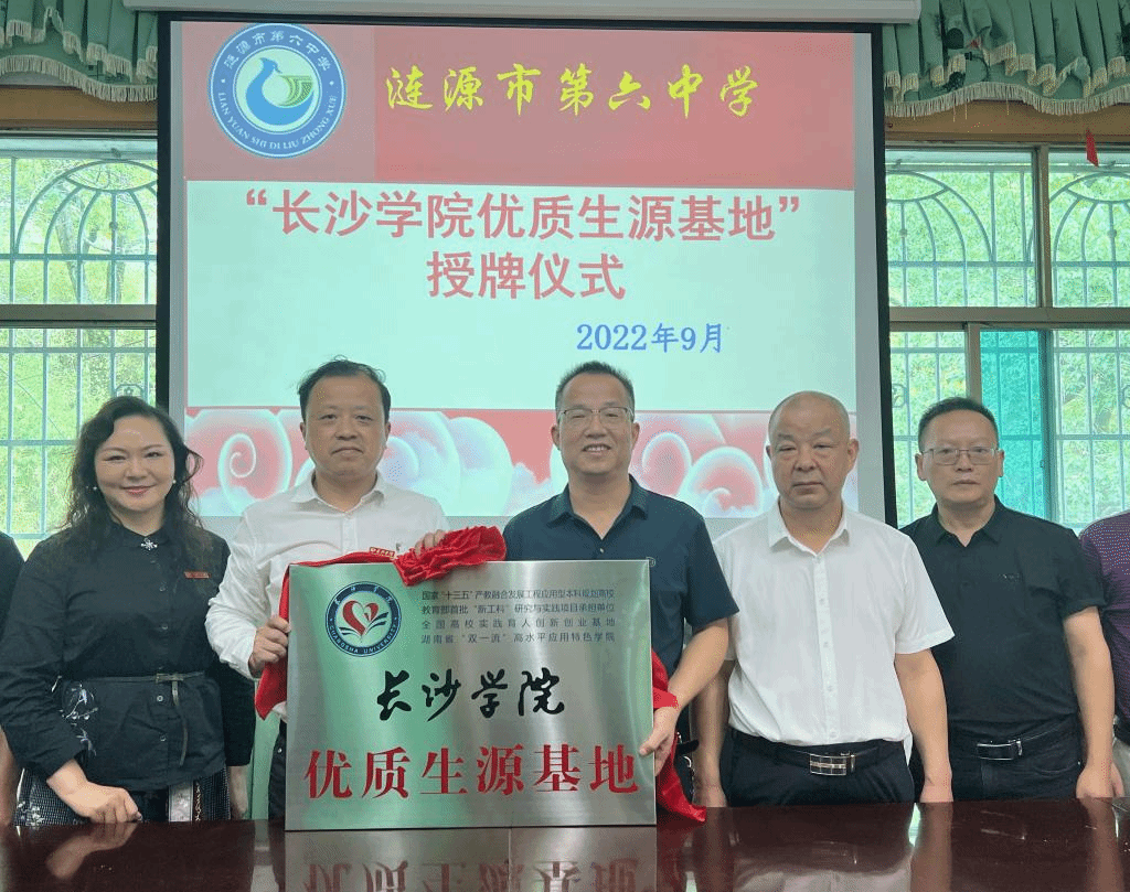 舒欣书记为涟源市第六中学授“长沙学院优质生源基地”牌匾