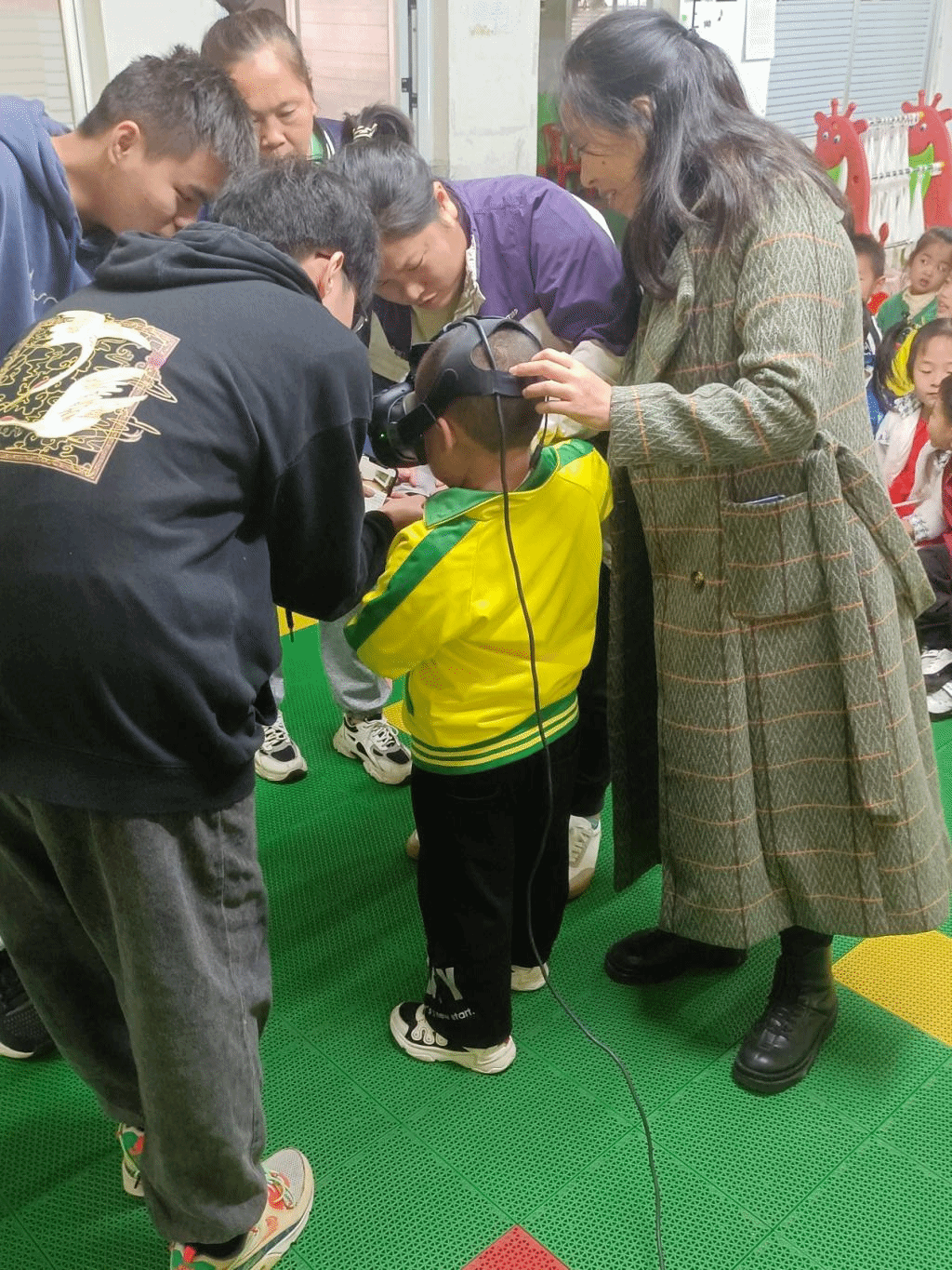 了解完VR眼镜的使用方法后,孩子们迫不及待的戴上眼镜开始体验: 遥控手柄,自由行走于池塘、菜地、故居之间,以沉浸式、全景式的体验学习,让师生穿越时空,让历史课本中的人物、图画、故事鲜活起来。“看着里面的一桌一椅、一砖一瓦,仿佛真的回到了那个年代,这种沉浸式体验太棒了!” 启萌幼儿园宋清耀老师赞叹道。