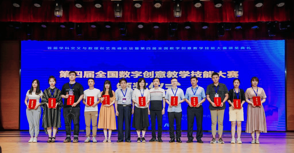 2021年7月9日至11日,由全国数字创意教学技能大赛组委会与天津职业技术师范学院主办的“首届学科交叉与数媒创意高峰论坛暨第四届全国数字创意教学技能大赛颁奖典礼”在天津隆重举行。我院优秀指导老师代表王果博士、莫尚剑博士应邀参与本次颁奖典礼。