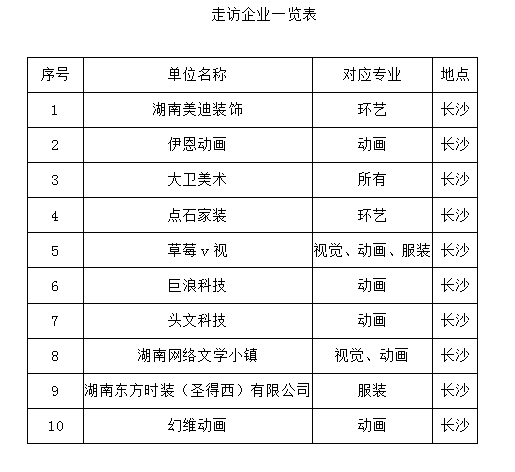 为掌握用人单位对人才的需求以及对我院毕业生的满意程度情况,了解毕业生进入岗位后的工作状况,加强学校与企业的交流与联系,促进教学模式的改格,在学校就业指导中心的组织安排下,今年12月艺术设计学院党总支书记舒欣、党总支副书记黄慧瑾、2020届毕业生辅导员樊晶、2021届毕业生辅导员张弦,一同走访10余家企业展开了对用人单位人才需求情况和毕业生工作状况的调研工作,并与其中三家企业顺利签订《大学生就业实习基地协议书》。