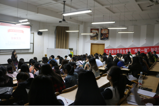我系于2016年5月27日晚七点三十分在丹青楼1101,在全体党员中开展“学党章党规、学系列讲话,做合格党员”学习教育实施方案专题党课教育,本次党课由艺术设计系党总支书记胡嫔教授主讲,再次对“两学一做”学习教育进行专题教育。此次党课共126名学生党员、预备党员、入党积极分子参与学习。