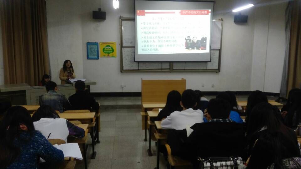 11月20日晚上七点在丹青楼1101教室,艺术设计系党总支书记胡嫔教授为党员、预备党员、入党积极分子讲授了自觉学习,做践行 “三严三实”的好干部的党课,有近180名学员听取党课。