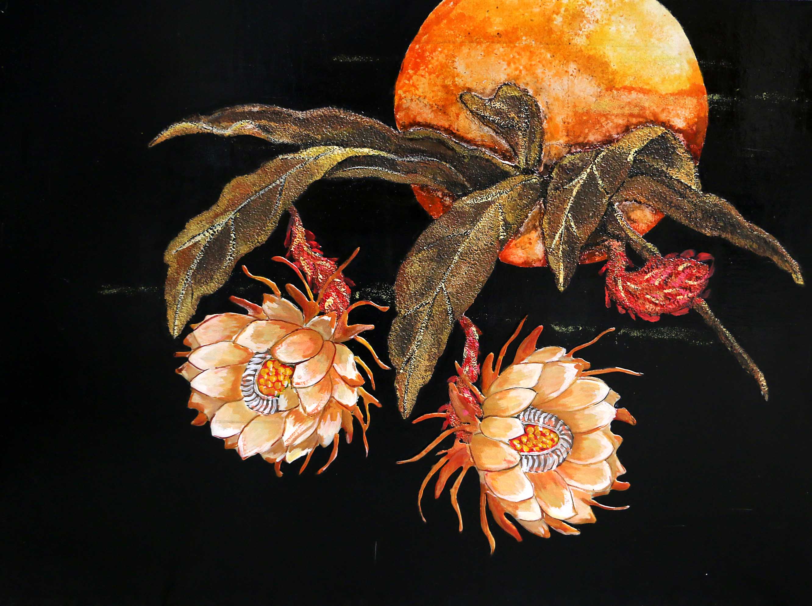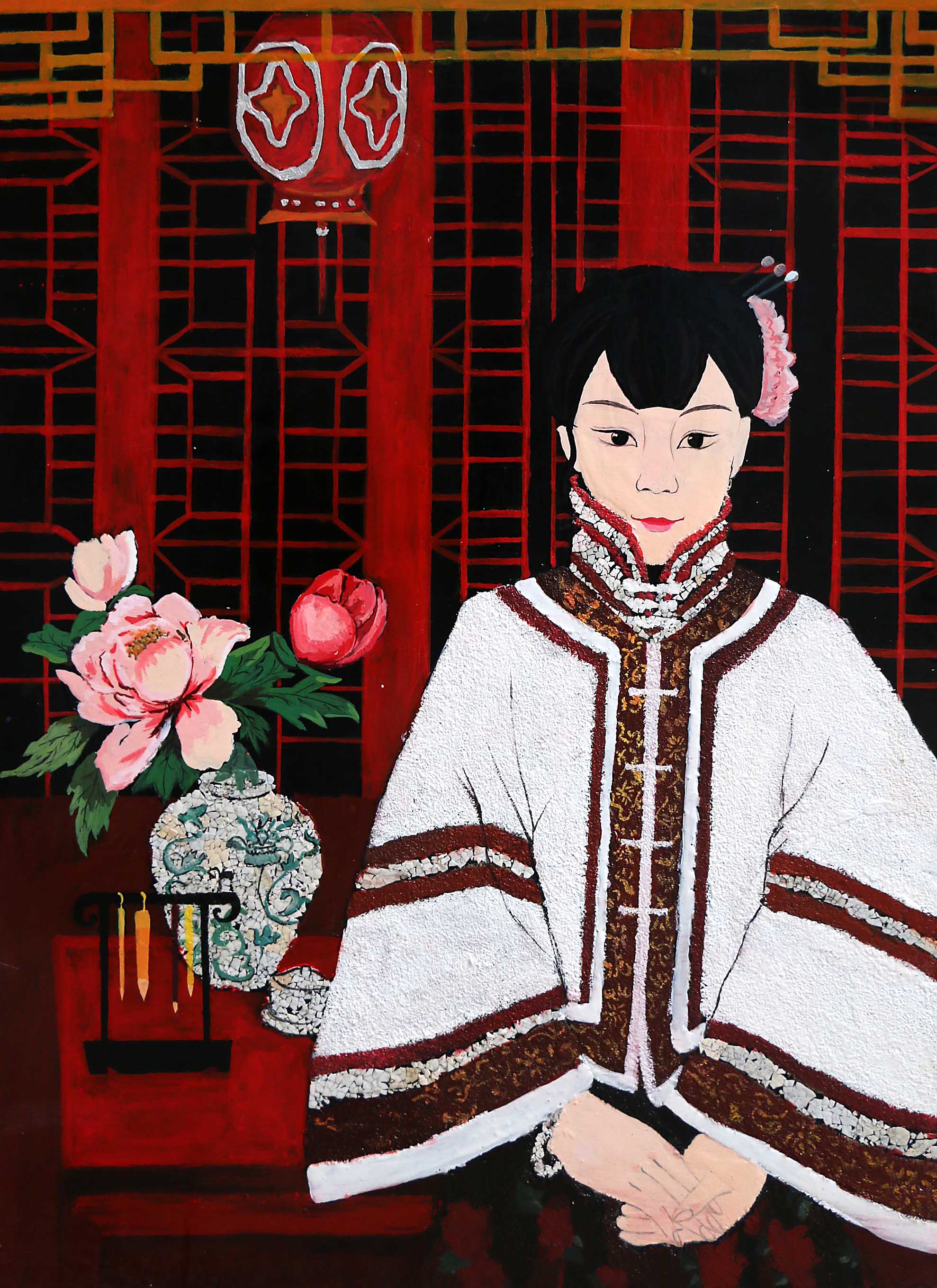 此次课程在朱希平老师的引导下,91名同学近一个月的制作,涉及的题材其中包括:花鸟、人物、风景以及各种实验性漆画等多种题材。在制作漆画的过程中,每一位学生为了使自己的作品别具一格,使用了不同的材料与技法,材料中除漆之外,还有金、银、铅、锡、铜、木屑、以及蛋壳、贝壳、螺钿等,技法上运用了撒木屑、堆漆、雕刻、打磨、喷洒、甩漆、压印、贴蛋壳以及平涂等一系列技法,师生们探索尝试各种方法以制作出丰富的肌理效果,使大家眼前一亮。作品充分的体现了90后的个性,吸引了各系绘画爱好者前来参观。这次展览是一次尝试,更是一次突破。
