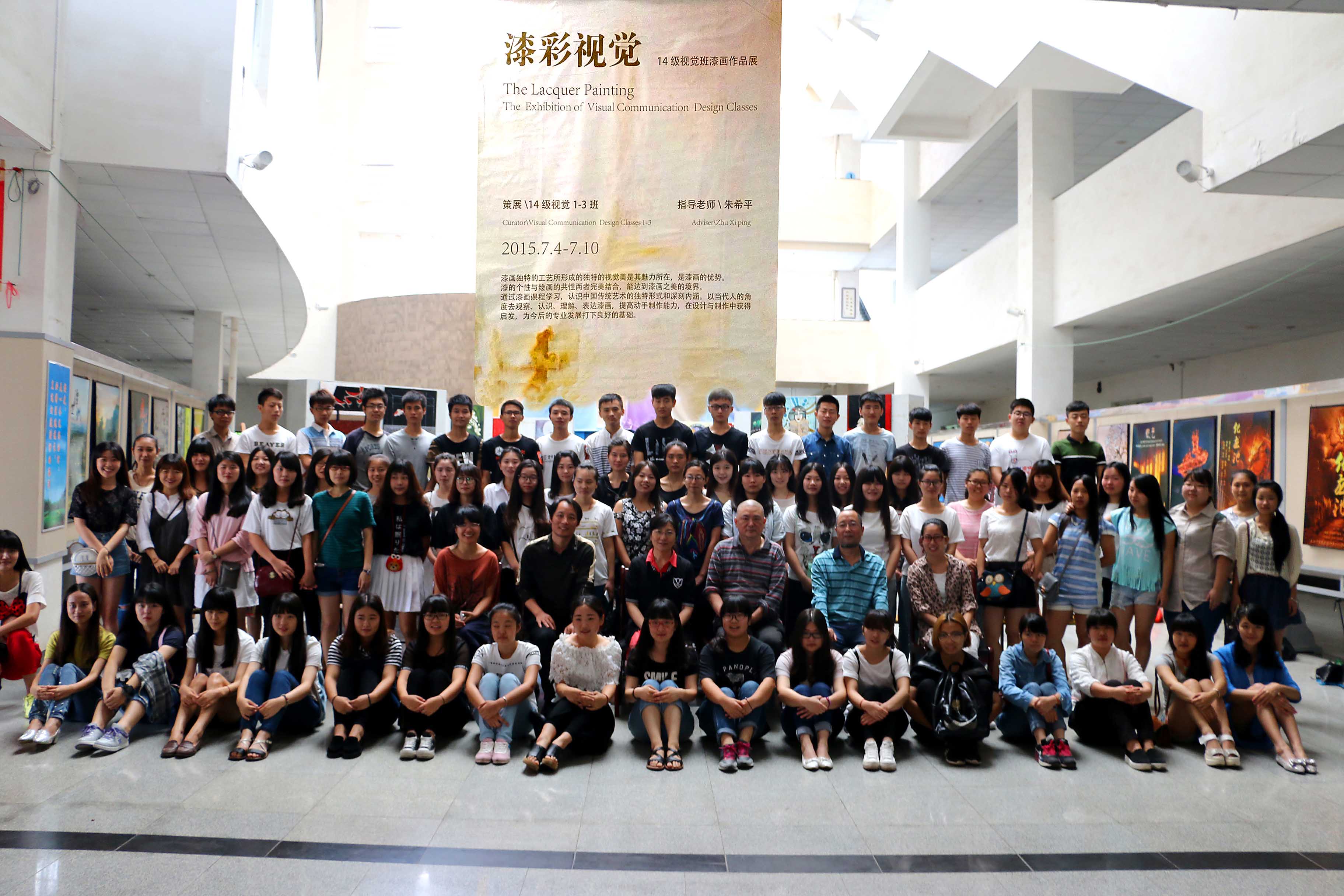 7月6日,由2014级视觉1、2、3班所有同学近一个月的时间完成的漆画作品展之“漆彩视觉”在艺术系丹青楼大厅展出,本次展览受到系部领导的大力支持和肯定。