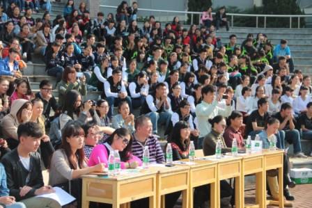 2013年11月17日下午二时许,艺术系第二届健身舞大赛在音乐广场隆重举行。艺术系主任柳玉、党总支书记胡嫔、党总支副书记徐远超、团总支书记张弦以及辅导员童博卉、胡蓉老师莅临比赛现场观看比赛并担任此次比赛的评委。来自艺术系各年级共14支队伍参加了比赛。