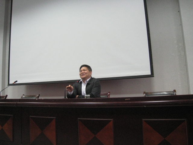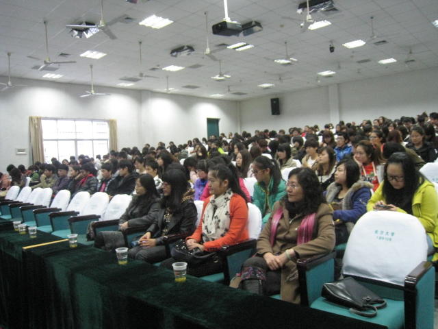 (本报讯 韩晓霞)2012年11月14日下午,致远楼学术报告厅人头攒动,由长沙学院教务处主办、艺术系承办的“艺术设计是什么”专题讲座在这里成功举办。主讲人为朱和平教授,博士、博士研究生导师,享受国务院特殊津贴专家、全国优秀教师、国家社科基金艺术学科评审专家、湖南省首届教学名师,湖南省艺术学科带头人、湖南省“百人工程专家”、湖南优秀研究生指导教师,湖南省社科基金、高级职称和社科成果等评审专家,湖南大学兼职教授、湖南城市学院“会龙学者”。讲座由艺术系党总支书记胡嫔主持。艺术系副书记吴桢婧、辅导员老师张磊、唐秀丽、童博卉和300余名艺术系学生参加讲座。