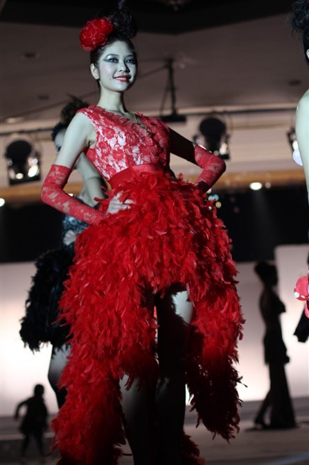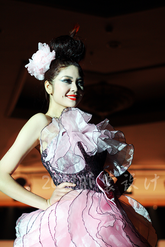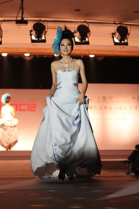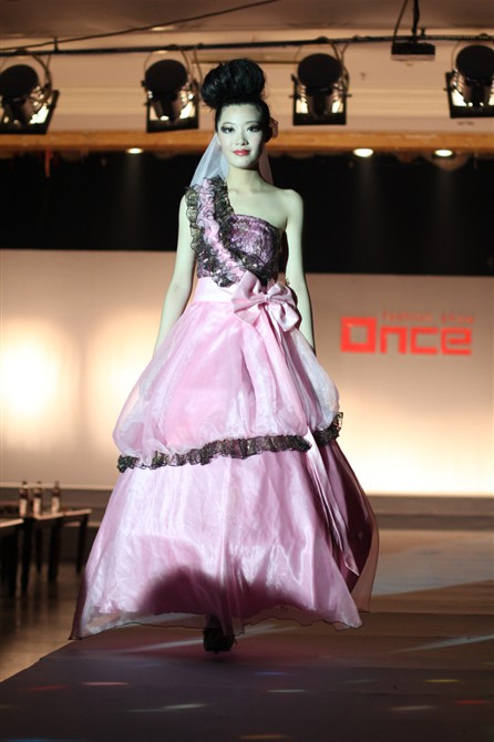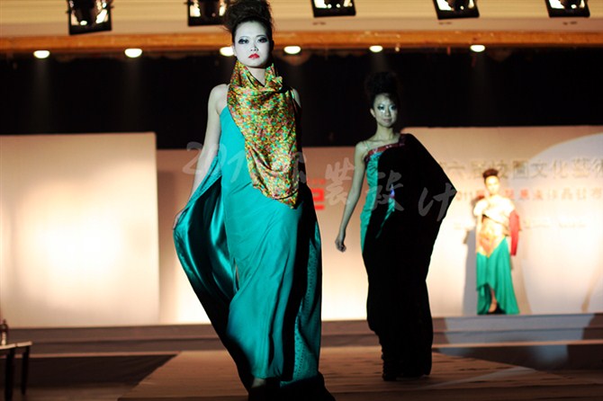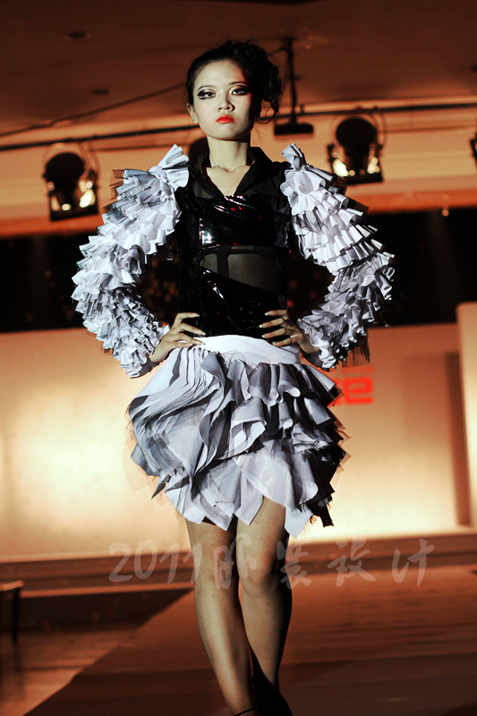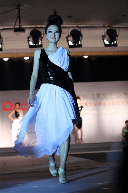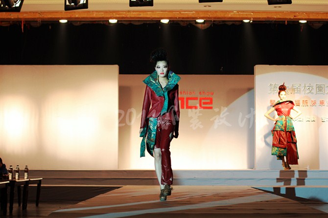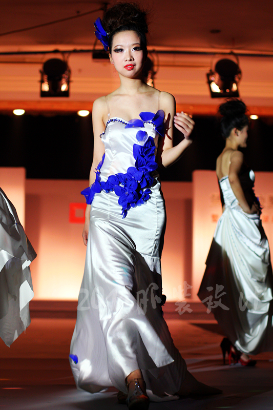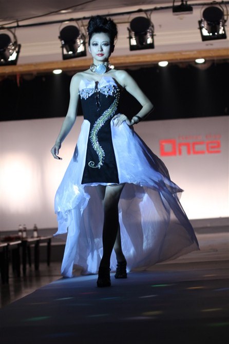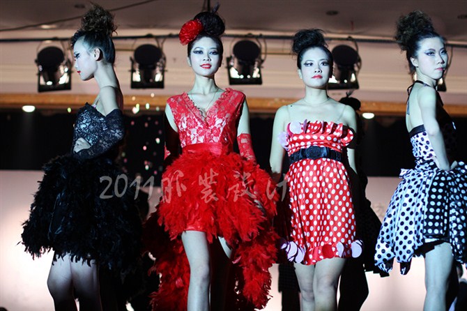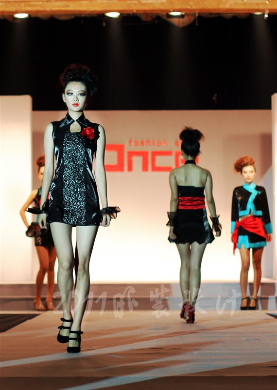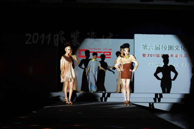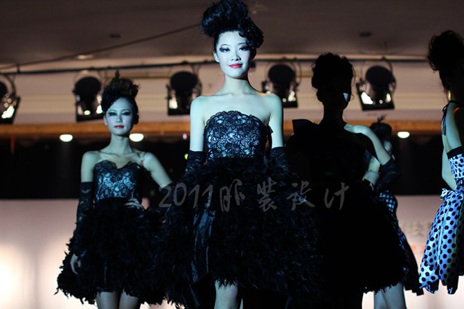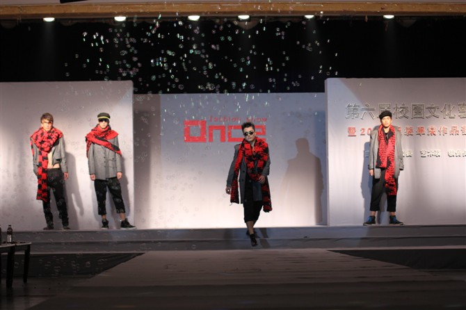 本届服装秀以"Once"(曾经)为主题,共展出由胡嫔、刘晓萍、邓伍英、刘剑虹、李霖霞及周磊指导的49位2011届毕业生的优秀作品。这些作品中,有以民间刺绣工艺为主题的,有以青铜器的再现为设计理念的,还有以纸、废弃的输液管为材质的,作品设计者以个性时尚的款式与和谐的颜色搭配带给观众强烈的视觉冲击。作品"霓裳舞江南",摇曳的旗袍拖着中国式的美丽,在音乐"梦里水乡"的衬托下,秀出中国女性的风姿绰约;"青花神韵"把传统文化的艺术再现于现代服饰的造型中,无论气韵、美感都十足;作品"筑"以独立的三维结构将人体作为设计的出发点,不断抽象化,赋予了女性现代都市化的性格特征。整场表演配以动感的音乐和迷离的灯光,带给观众一场盛大的霓裳盛宴,博得了观众的阵阵掌声。另外,本次服装秀的表演模特均为我校学生,模特的完美展示更进一步地表现出服装的制作和韵味的完美,也为活动的成功举办增添了无限精彩。最后,出席领导、服装作品设计者及其指导老师一起合影留念。