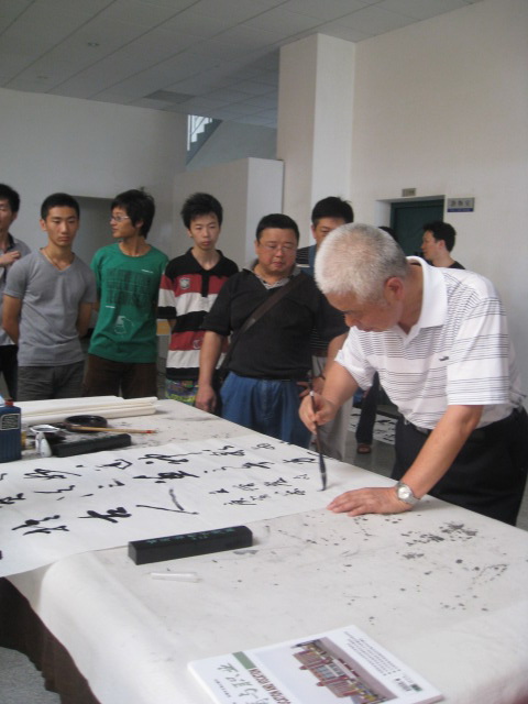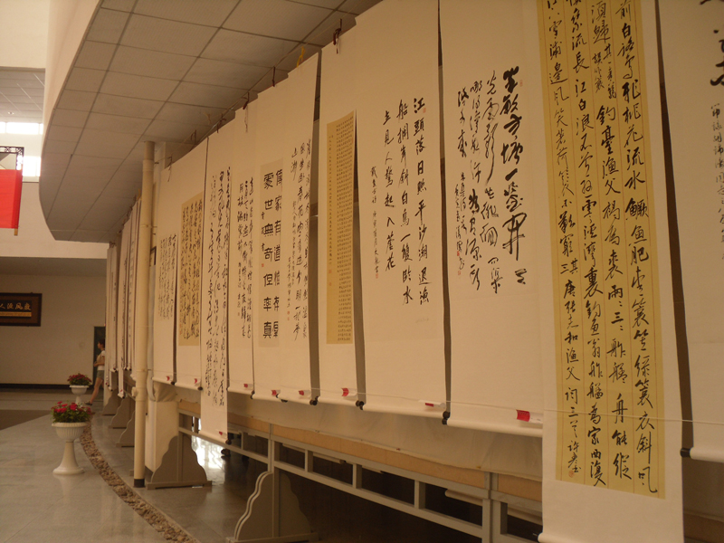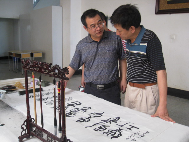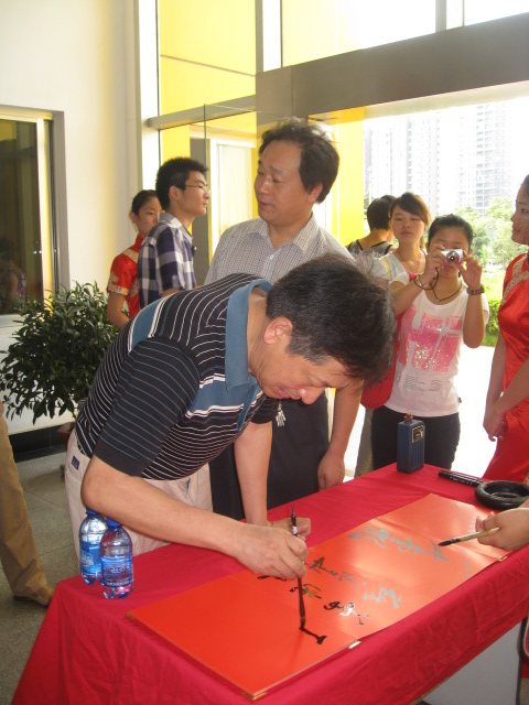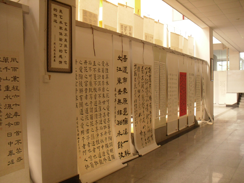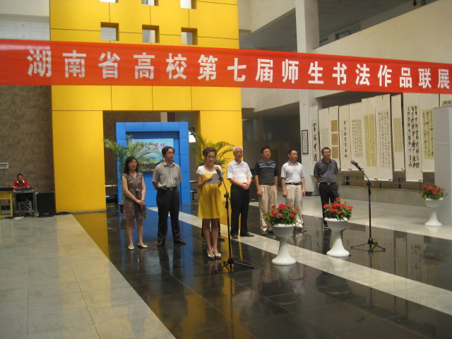 本报讯(尹小龙) 书法不只是写字,也不只是艺术,更是一种精神。7月3日上午,由湖南省教育厅艺术教育委员会、湖南省教学会书法教育专业委员会和我校艺术系联合主办的“湖南省高校第七届师生书法联展”在丹青楼开展。党委副书记、副院长李云龙、高校书协主席王元建、副主席刘亚东、秘书长罗虹胜、著名书协艺术家蔡德林、中南大学艺术学院院长王希俊以及湖南第一师范学院苏美华教授出席此次联展。