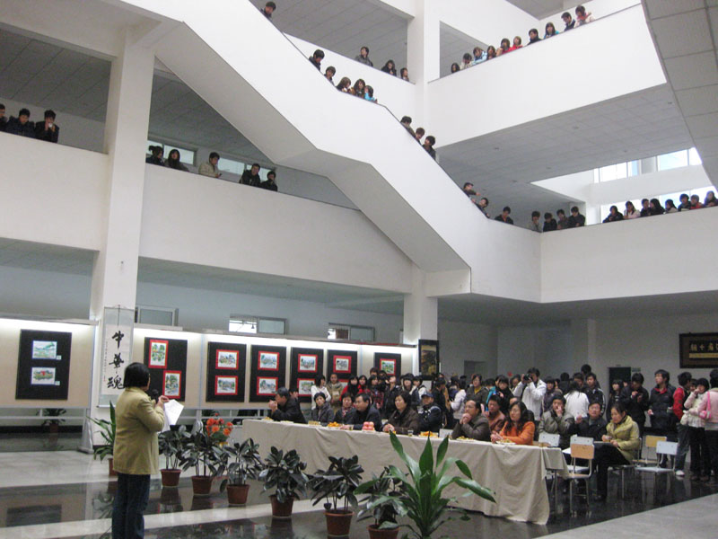 12月10日下午,伴随着精彩的节目演出,艺术楼大厅领导、师生齐聚一堂。筹备已久的“腾飞的中国,崭新的长大”书画展在此浓墨重彩地揭幕。校党委书记李咏芳,副书记、副院长李云龙,副院长钟惠英、屈林岩出席了当天的仪式并剪彩。钟惠英副院长为展览开幕致词。