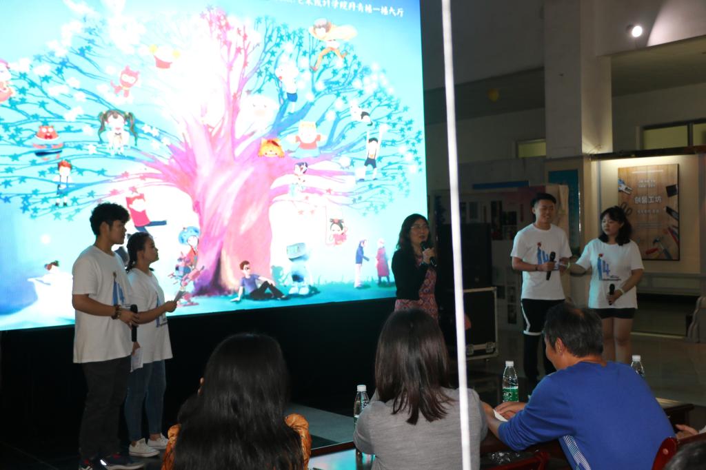 艺术设计学院党总支部书记胡嫔书记为本场晚会致开幕词,总结了艺术设计学院2017——2018年度的工作情况以及收货的各项荣誉成果。并对即将毕业的14级动画专业学生提出了未来期望与深切美满的祝福。