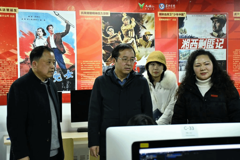 陈赤平校长一行调研艺术设计学院红色电影数字化修复实践中心