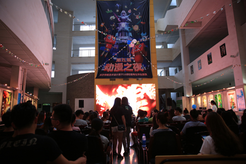晚上7时艺术设计系丹青楼人山人海,热闹非凡,艺术设计系2012级动画“动漫之夜”的动画作品展播拉开序幕。晚会展示长沙学院首部科幻电影《拯救》,该部影片利用三维动画和实拍技术相结合的科幻片。作品展示分为二维动画、三维动画、交互设计、定格动画等几个部分。此次展演展出了与动画学生综合设计能力,作品质量高于往届。大部分学生们与观众都表示,今天的“动漫之夜”是一场视觉的饕餮盛宴,是一次成功的动画毕业作品展示活动。活动连续举办五届,邀请了业界和省内高校学习交流,产生了热烈反响。