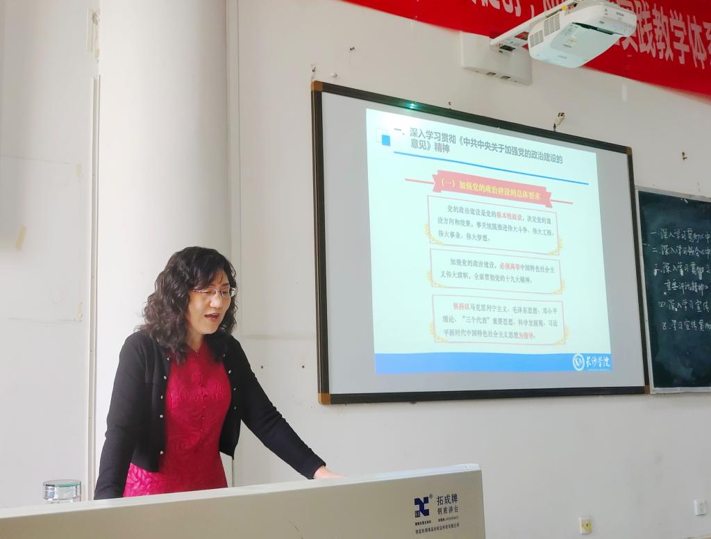 2019年4月23日下午,在丹青楼1106室进行学习《中共中央关于加强党的政治建设的意见》、《中国共产党重大事项请示报告条例》、习近平总书记在学校思想政治理论课教师座谈会上的重要讲话精神、全国两会精神等党的理论知识辅导讲座,由艺术设计学院党总支书记胡嫔同志主讲,全体教工党员和学生党员参加学习。