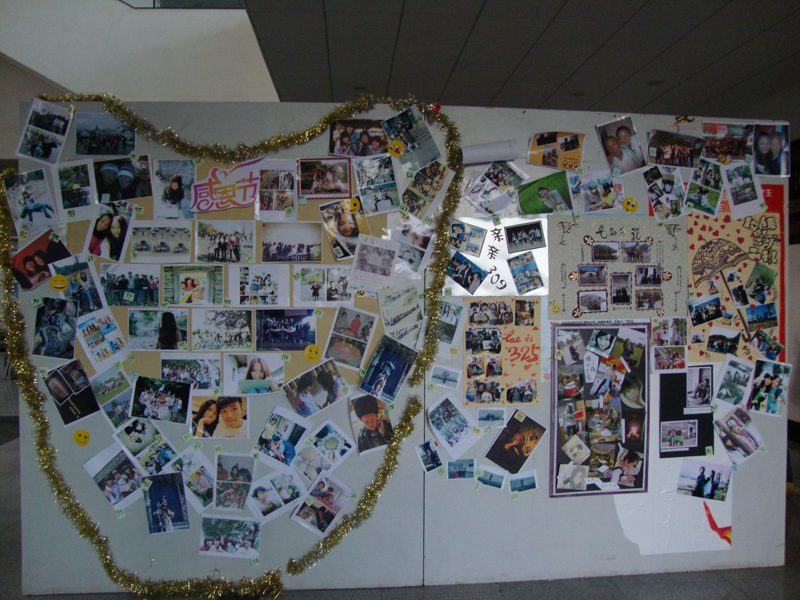 (本报讯 詹瑶瑶)为了让大家更真切的感受感恩节的浓浓情意,艺术系心理拓展部组织、举办了“晒幸福”活动。并于11月24日,在艺术楼大厅展板上晒满了各种幸福照。