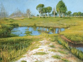 油画《郊外晨光》2008年7月获热土星城三十年优秀作品奖;