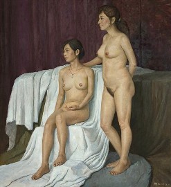 油画《带项链的裸女》《红珍珠》《坐着的女人体》《双女人体》