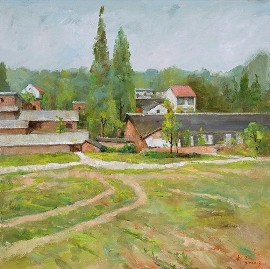 油画作品《村口》2008年5月参加全国第十一届美术作品展览--湖南展区湖南省优秀美术作品展;