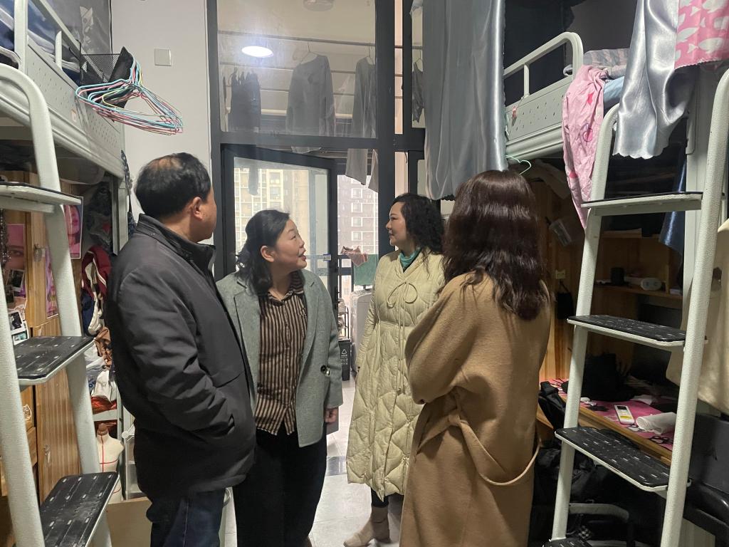 本次检查,重点围绕用电安全、卫生状况、消防设施等方面展开。检查过程中,学院领导与同学们亲切交流,叮嘱大家严格遵守宿舍管理规定,杜绝使用大功率电器、私拉电线等安全隐患行为。党总支书记舒欣详细询问同学们在新学期的学习和生活计划,鼓励大家不断提升自己的专业素养和综合能力。他希望同学们能够树牢安全意识,及时清理各类安全隐患,共同维护宿舍卫生环境,营造温馨、和谐的宿舍氛围。