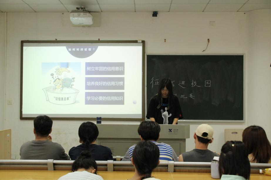 “征信知识进校园”主题宣讲比赛于2022年6月7日在丹青楼3102举行。本次宣讲比赛共有16个来自各个班级得参赛小组参与。各组成员按照比赛顺序依次进行宣讲,通过精心制作的图文演示、慷慨激扬的主题宣讲,从不同的角度、利用典型的案例生动地将征信知识宣传入脑入心,为观众们填补了校园征信知识缺乏的短板。活动最后,学院资助专干解籽涵对本次宣讲活动进行总结,从真实案例、如何应对、如何防范等方面进行分析,提醒学生们警惕和预防征信金融诈骗及电信诈骗。