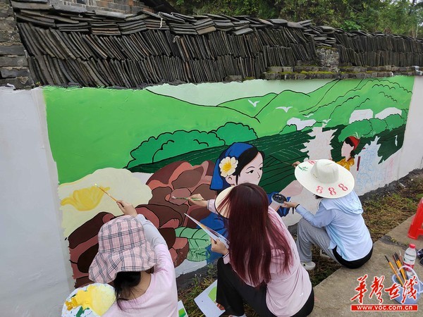 在驻村调研实践时,实践团师生还了解了当地乡土文化辰溪高腔,以及篮球运动在辰溪乡村的普及,也把辰溪高腔、篮球运动融入到墙绘中。