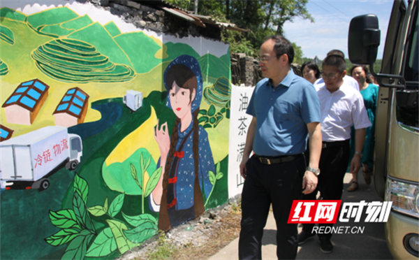 在本次“三下乡”墙绘实践活动的最后一天,长沙学院党委书记杨小云等一行人来看望慰问“三下乡”师生。在经过特色产业文化墙时,杨小云特意下车观看,并连连称赞,给了墙绘队全体师生莫大的鼓舞和肯定。师生们一致表示要发挥好专业特长,用手中的画笔去装点广阔的农村天地,在乡村振兴建设热潮中发挥艺术设计学院这块金字招牌的魅力。