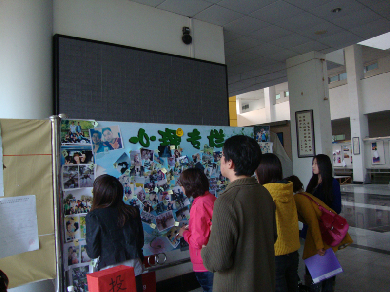 本次活动于 11月20日起开始在艺术楼以摆点形式和班级集体报名形式进行照片征集,共征集各类幸福照近180张。23日晚,心理拓展部工作人员便在艺术楼大厅展板上布置了照片,并摆放成心形图案。24日活动一开始,现场气氛便十分热烈。全系学生积极地参与了活动,并在认真、仔细观看了各类幸福照后,以投票的方式选出自己认为最具幸福感的作品,并且系部有很多领导、老师也参与到了投票活动中来。同时,心理部以投票“送笑脸”、“送祝福“的方式表达对各位老师和同学感恩节的深切祝福。中午时分,活动场面达到高潮,同学们在投票之际还以讨论的方式选出“最•幸福照”。25日,投票结果揭示,共评出团队奖、个人奖共15项。