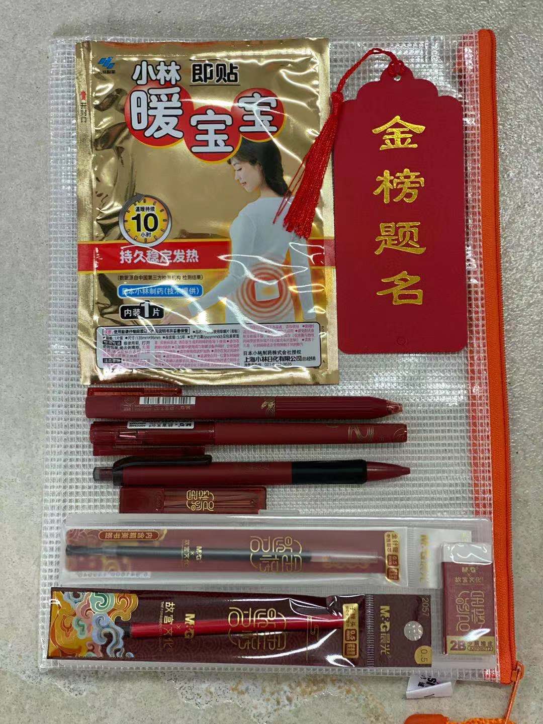11月15日艺术设计学院为全院35名考研学子做考前动员并发放“考研加油包”,“考研加油包”里面有一张祝福卡片、一片暖宝宝以及一组专门的考试用笔,小小礼包传递力量和温暖。