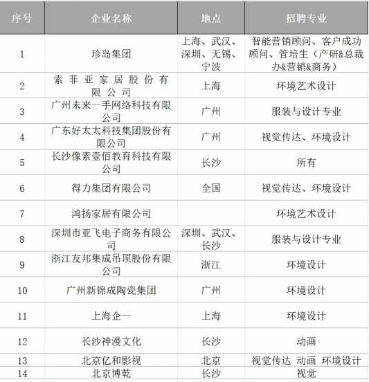 寒去春将至,厚雪蕴新芽。希望求职的艺术设计学院的小伙伴们充分把握好寒假奋战期,为年后即将到来的春招季做好高效准备,都能收获自己心仪的offer。以下是2023下学期到学院招聘的公司,同学们可以根据自身需求进行选择了解,若有需要就业推荐的小伙伴请联系宋老师对接相关企业。