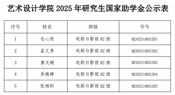 公示期为五个工作日,如有异议,请于公示期内与艺术设计学院教务办李戈丹老师联系。