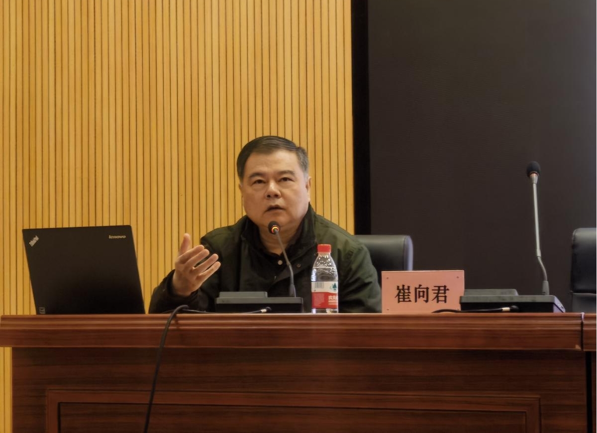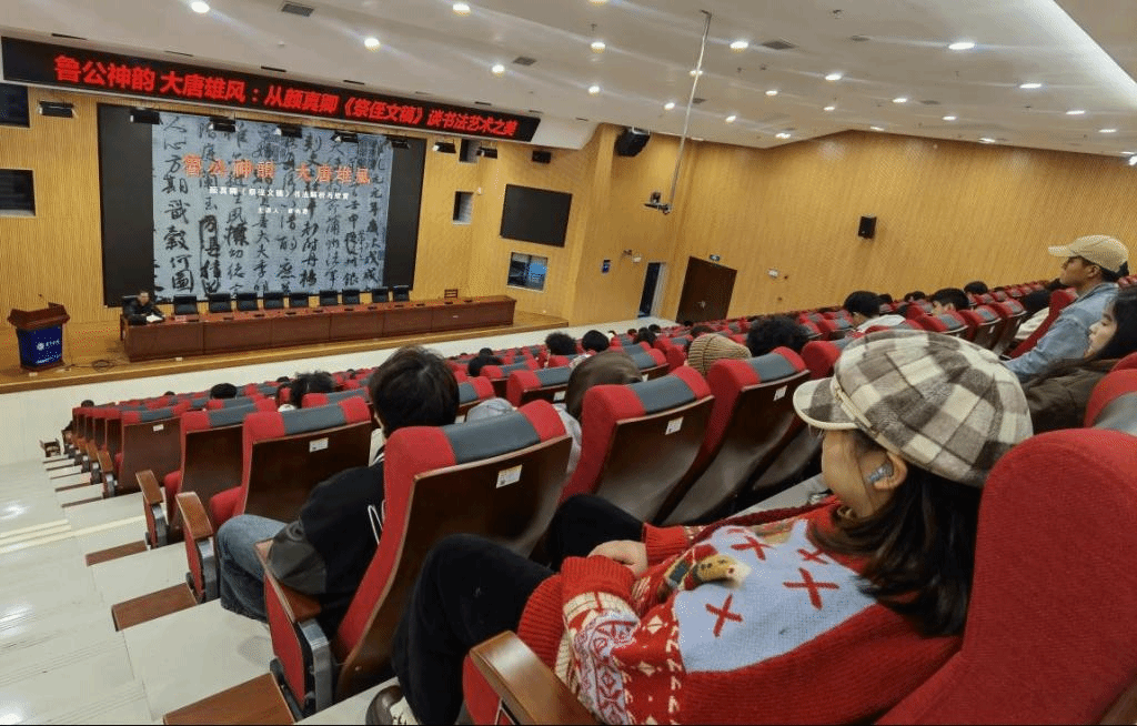 2024年11月26日晚,艺术设计学院在图书馆学术报告厅举办“鲁公神韵·大唐雄风——从颜真卿《祭侄文稿》谈书法艺术之美”主题讲座。讲座由中国书法家协会理事、湖省书法家协会副主席兼篆书委员会主任、国家一级美术师崔向君先生主讲,艺术设计学院院长胡友慧教授主持。艺术设计学院部分教师及200多名学生、学校书法协会学生聆听了此次讲座。