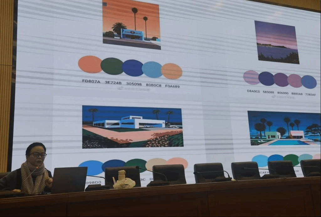 唐宇冰教授带来了题为《色彩搭配与人物形象塑造》的专题讲座,深入浅出地讲解了大自然色彩提取方式方法、色彩的选择搭配与人物形象的造型等丰富实用的专业知识,并饶有兴致地分享了其从教数十年对色彩搭配设计课程的教学经验与成果。最后与艺术设计学院师生展开互动,现场进行形象设计教学指导。这些创新研究及教学形式新颖有趣,引起了现场师生的广泛讨论和积极参与,现场气氛十分活跃。